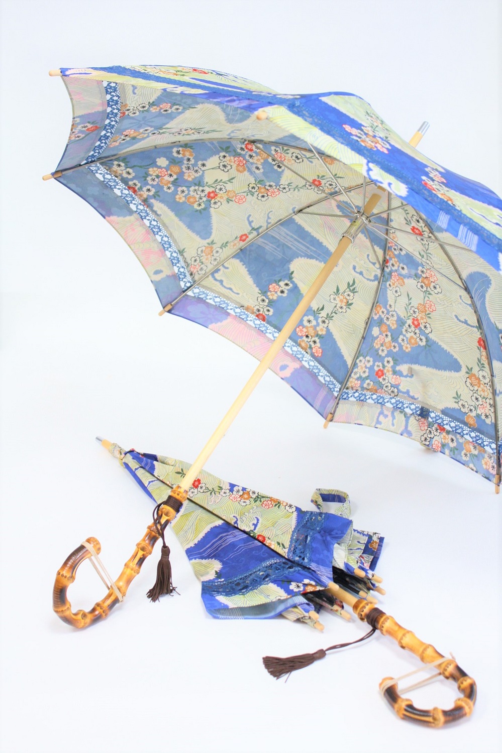 着物リメイク 2本の日傘をお作りします。仕立て上がり写真