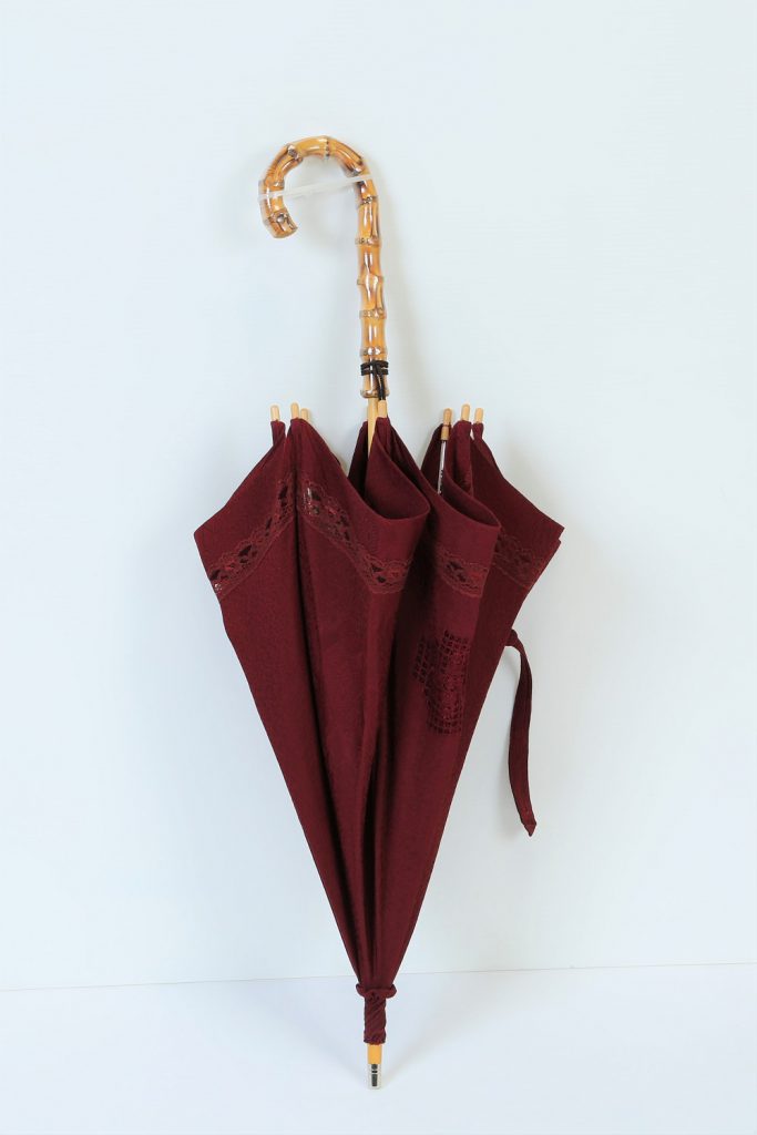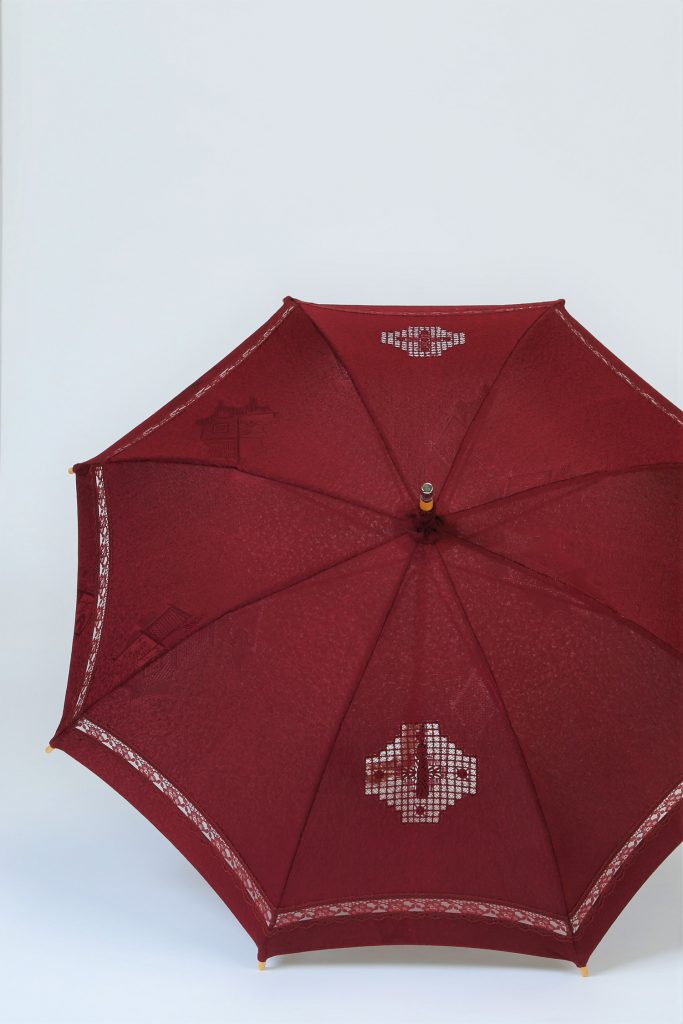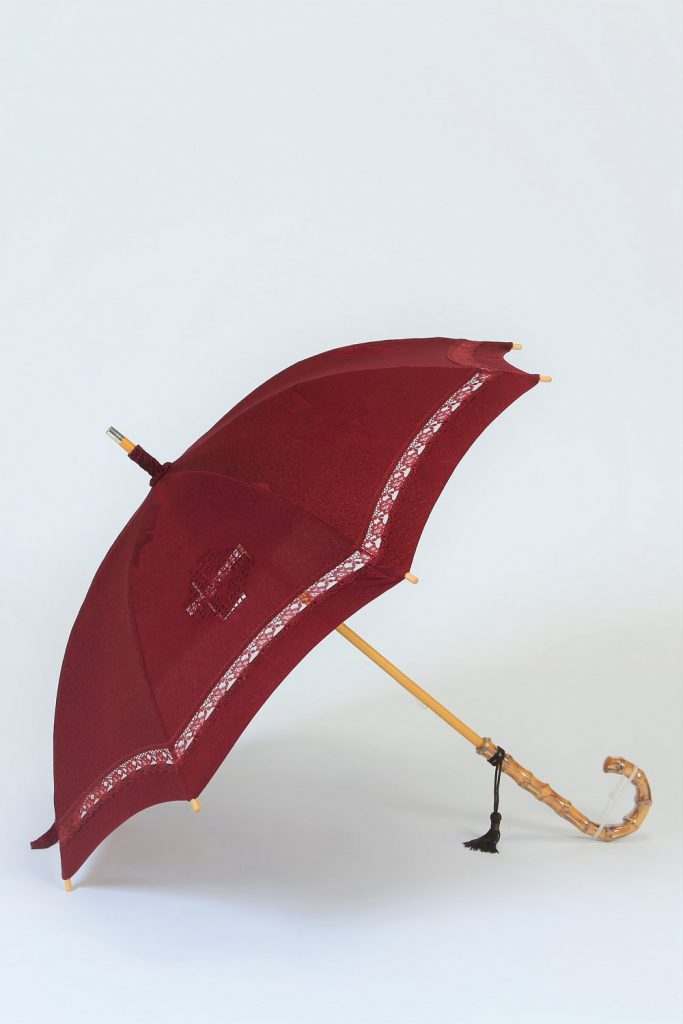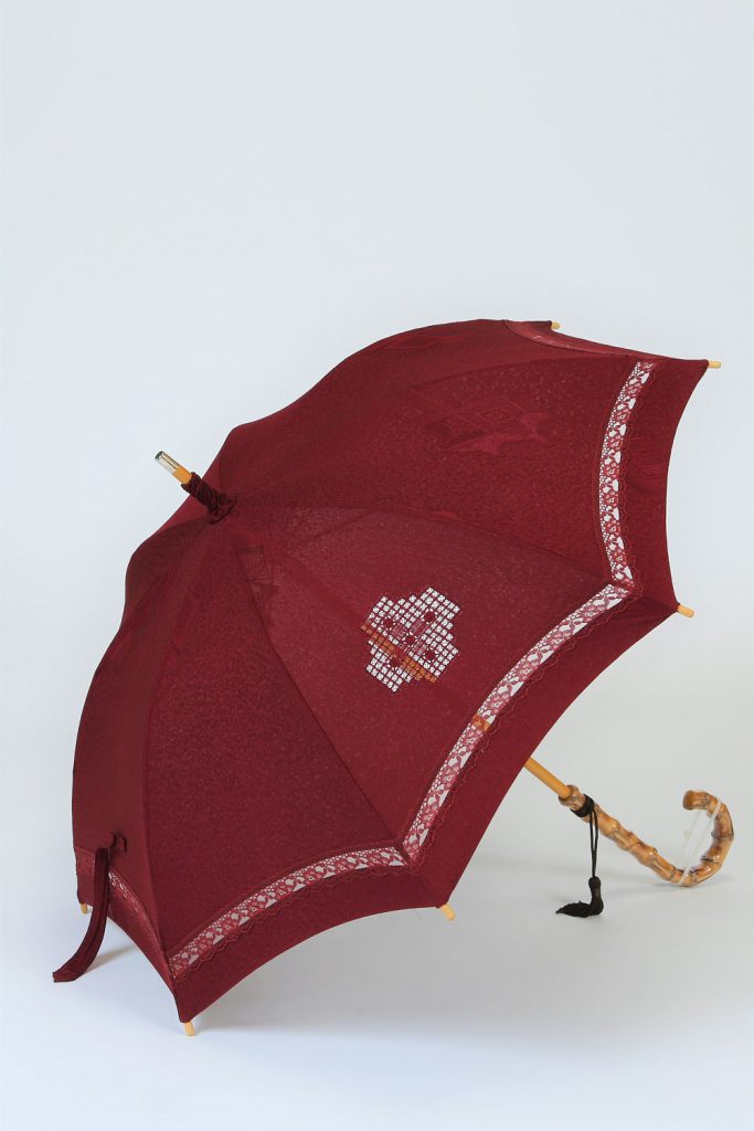 【道行コート リメイク】えんじ色道行コートを日傘へリメイク