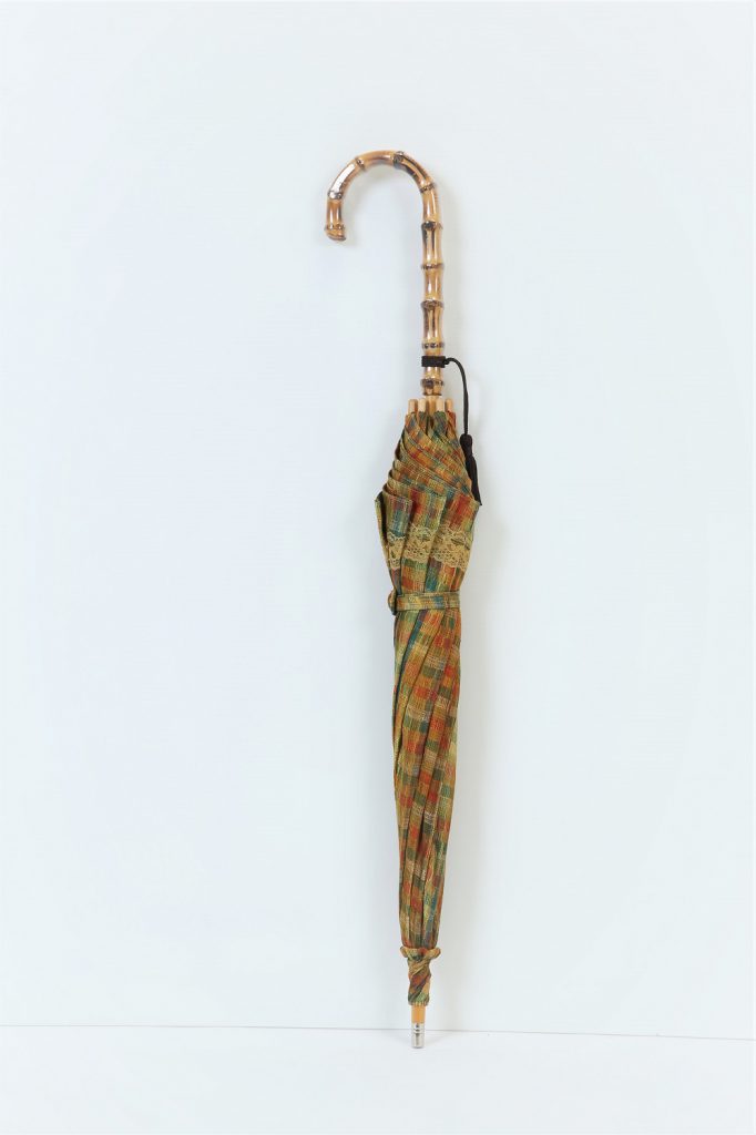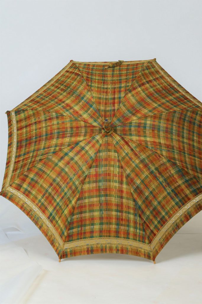 ちょっとカーディガン感覚で軽く羽織れる、気軽さ。格子の織りがまた可愛い。あると嬉しい1枚だと思います。でも着る方がおられないのと、形見分けになさるとの事でした。可愛い日傘になりますね。
