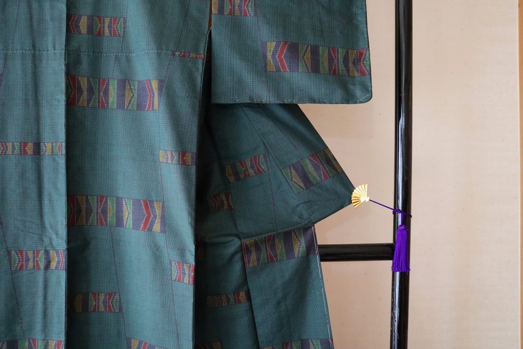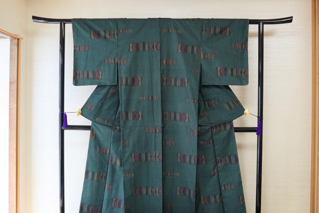 深緑色の紬着物をご依頼頂きました。着物の時の写真です