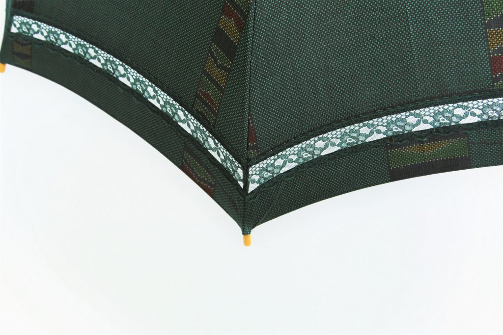深緑色の着物から日傘へのリメイク 出来上がり