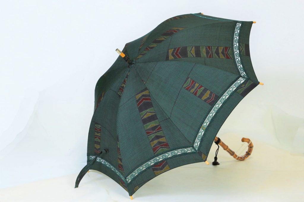 素敵な日傘を2つご覧いただきました。紬の着物は、お嫁入りの時に1枚誂えておられることが多いのでお家に眠ってるのではないでしょうか。ご覧いただいた明るい色のタイプでもシックなお色でも素敵に仕上がるのが日傘の魅力です。残った生地で他のアイテムもお揃いで一緒に作ってもよいですね。眠ったまま、気になるままにしているより、生かしてあげるのも一つだと思っております。大切な着物を生かしてみませんか。