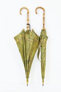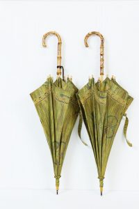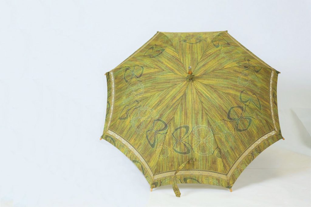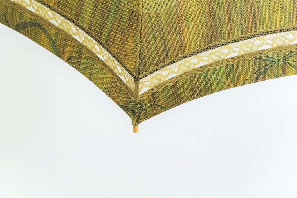 黄緑色の紬の着物から2本の日傘へリメイク 出来上がり