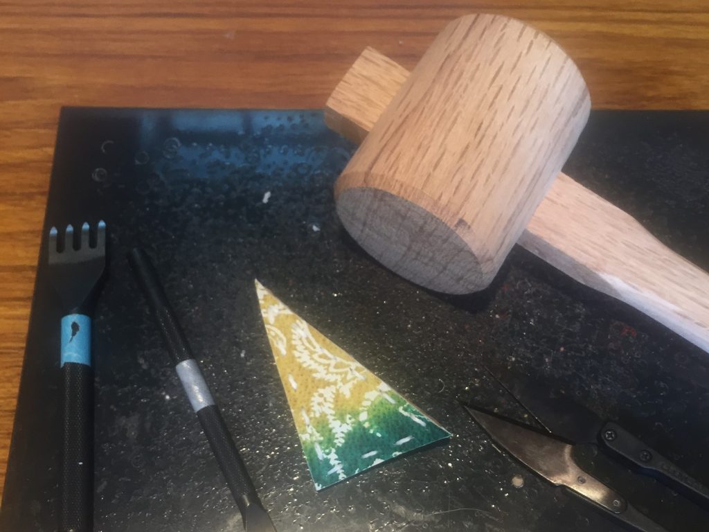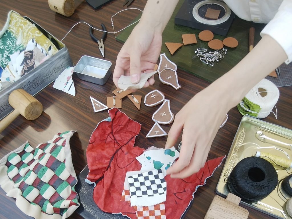 友禅の染めの革で、ブローチを作るワークショップに
