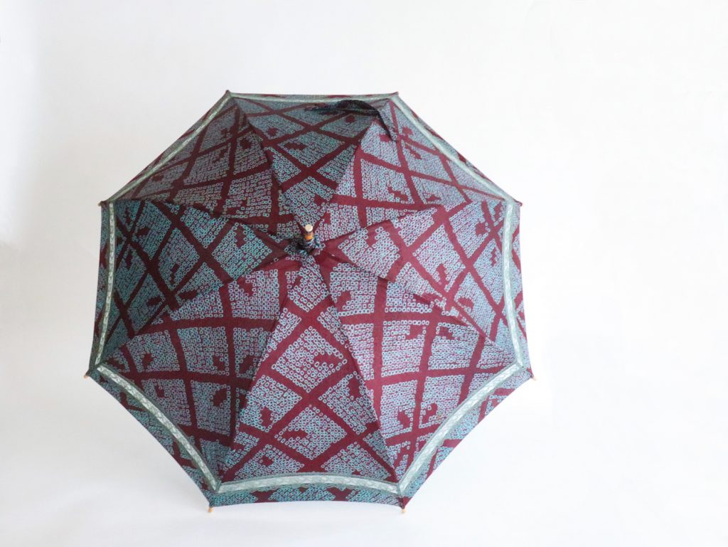 昨年私の誕生日に母が亡くなりました。きもの派だった母からこの羽織をはじめ、きものを譲り受けましたが、私は身長が165㎝で130㎝台だった母のきものは残念ながら着ることが難しく、パラソルにしたら手に取る機会も増えそうだなと思ったのが、ご依頼のきっかけです。「この羽織は、染め直して着てはったお気に入りなのでは」と、静京さんに教えていただいてから、もっと愛着が生まれました。