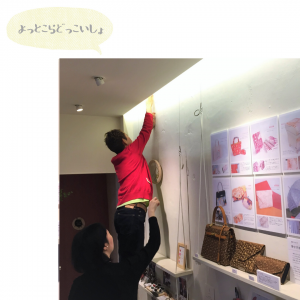 カフェの奥の壁側スペースの展示作業です。あ・・・肝心の私は撮影してたので写真には載っておりませんが、しっかりお仕事して参りました(‘◇’)ゞ