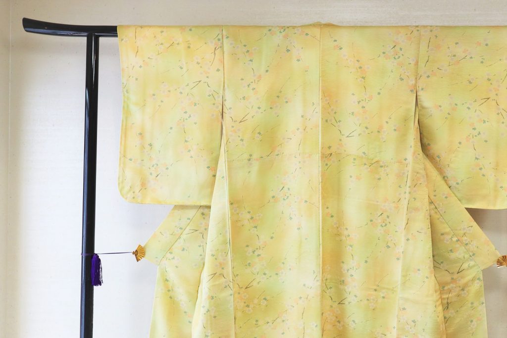 優しい黄色の小紋の着物