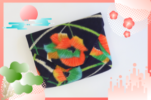 黒の中にお花の模様が生きています~お顔の近くに赤色があるのがいいですね