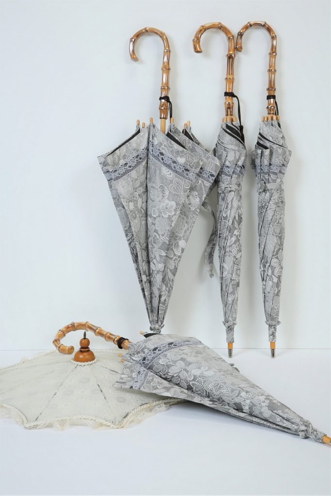 こちらのご依頼は1枚の着物から4本の日傘をお作りしました。それはできるだけ最後まで生地を生かしたいから。