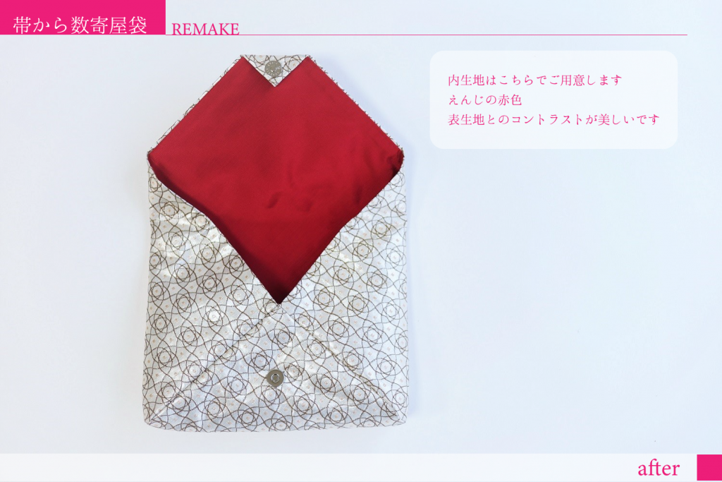 【帯 リメイク】帯ハギレ生地から数寄屋袋へリメイク ビフォアフター
