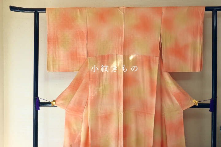 ぼかし染めのお色が美しいです。優しい雰囲気の小紋の着物。