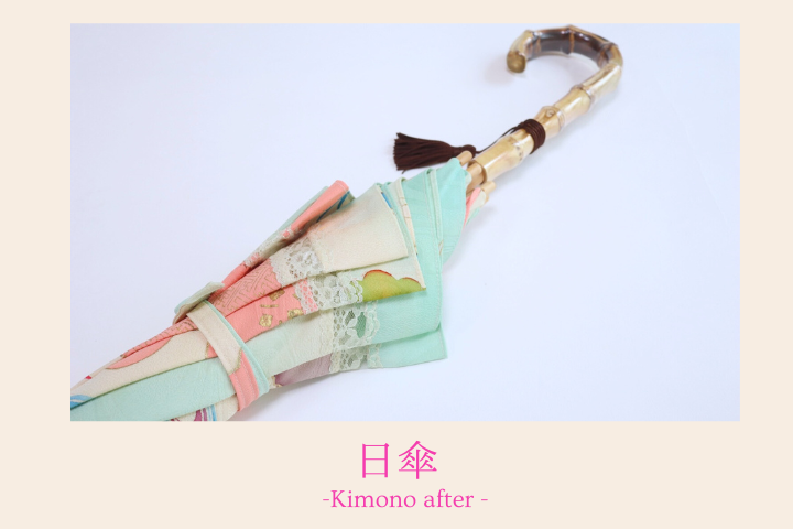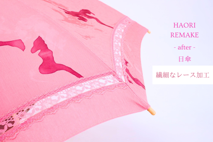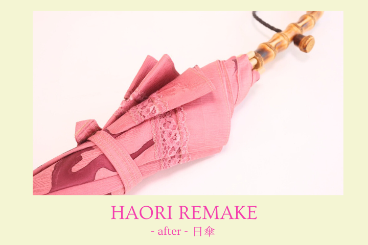 たくさんの写真でビフォーアフターをご紹介させていただきました。一緒にリメイクをしているような楽しい時間になりましたでしょうか。そうだったら嬉しいのです。職人の良いお仕事を感じる日傘、リメイクはお客様が着物・羽織を大事にしたい思いがギュッと詰まっています。お使いいただくたびに嬉しく幸せな時間でありますように。