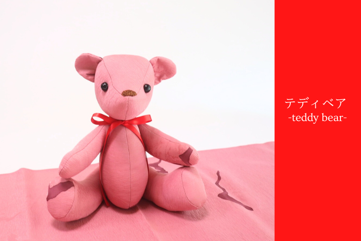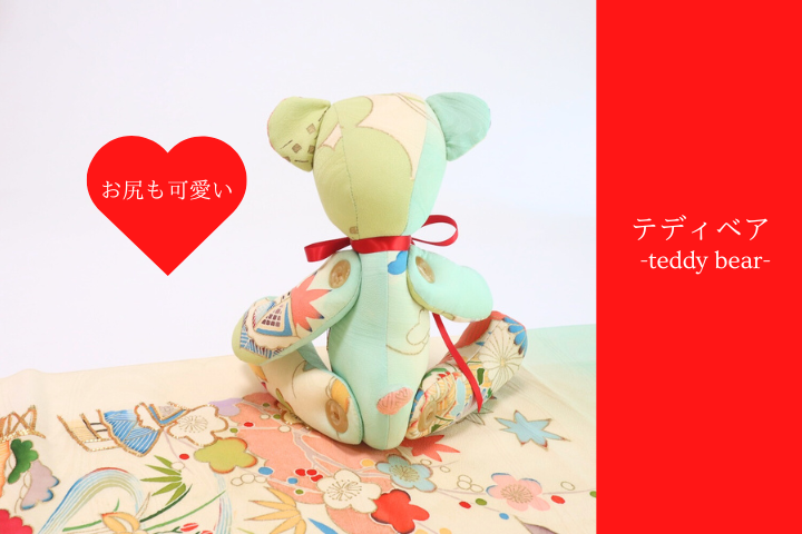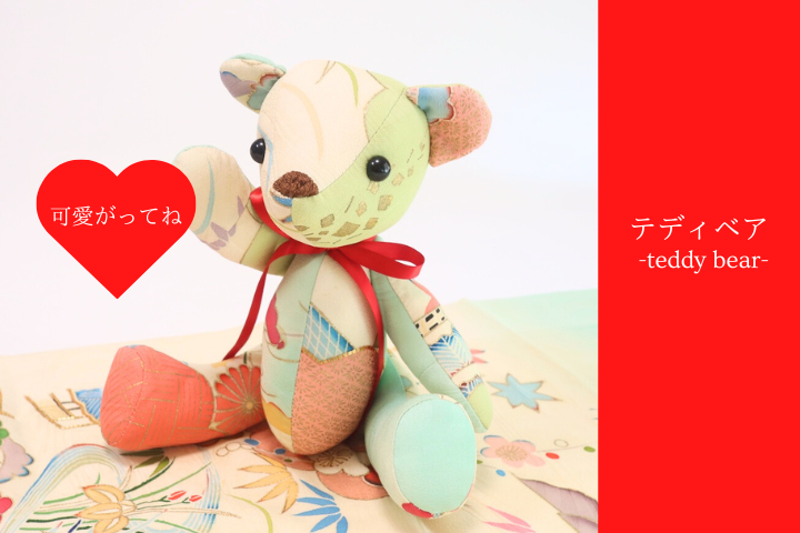 「着る機会が難しい・・・」とご相談いただいたのですが、生まれ変わらせることで日傘はお出かけの時に、テディベアはお家でとても大事にしてくださってとっても大事にしていただいてます。これは着物も本望だと思います。リメイクすることで、長く一緒にいられたらそれはもうプライスレスなこと。リメイクのお仕事している中でいつもお客様には素敵なお言葉をいただいて、リメイクの魅力はお客様から教わっていることがいっぱいです。掲載許可も快諾くださって感謝ばかりです。