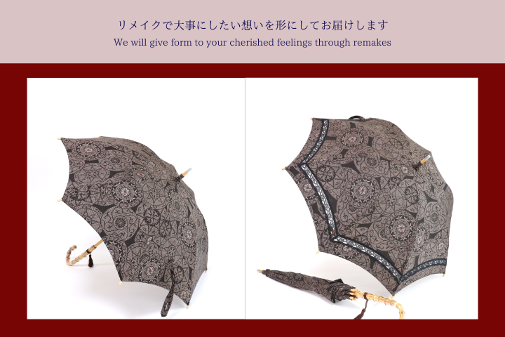 ご覧くださった皆様にも大島紬のお着物のリメイクが素敵でかっこいい姿になる様子を楽しんでいただけましたでしょうか。使うだけでもあるだけでも幸せな日傘と思います。思いを形にしたリメイクのご紹介でした、長い文章と写真を最後までご覧下って有難うございます。
