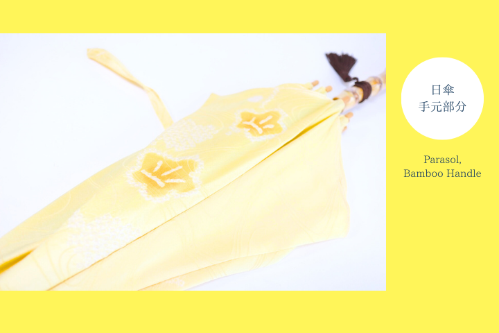 日傘になって、絞りの文様が良い配置で作られています。明るくて上品な日傘は絹の上質な艶感もあって、とっても素敵です!