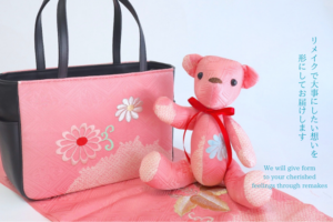 この記事では【絞りの着物】から【日傘】 へ リメイクのビフォーアフターをご紹介させて頂きます。10月4日の記事からの続きで同じお客様にご依頼いただきました。テディベアさんとバックと日傘のオーダー、どのアイテムのそれぞれの生地の魅力を生かして素敵になっております。最後はアンケートにもお答えいただけておりまして、ご覧いただけると嬉しいです。