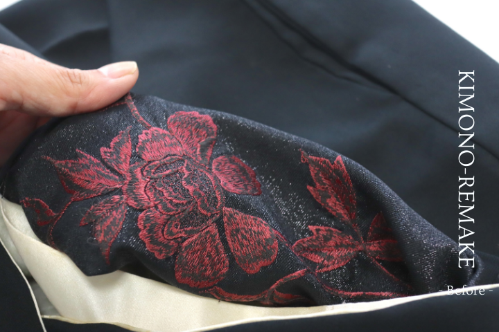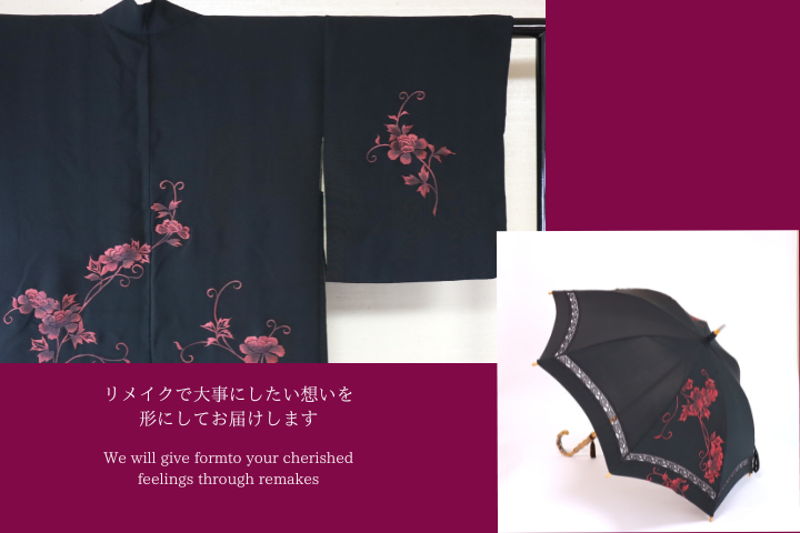 この記事では【黒羽織】から【日傘】 へ リメイクのビフォーアフターをご紹介させて頂きます。