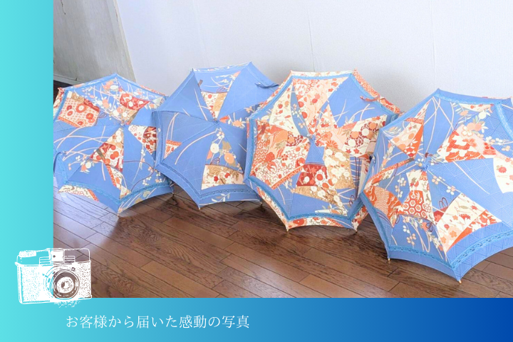 この記事では、そんなご家族の深く温かい愛情から生まれた、素晴らしい振袖リメイクの実例をご紹介いたします。 1着の美しいお振袖が、なんと「4本のレース日傘」へと生まれ変わりました。素敵なリメイクビフォーアフターとお客様の嬉しいご感想をお届けします。