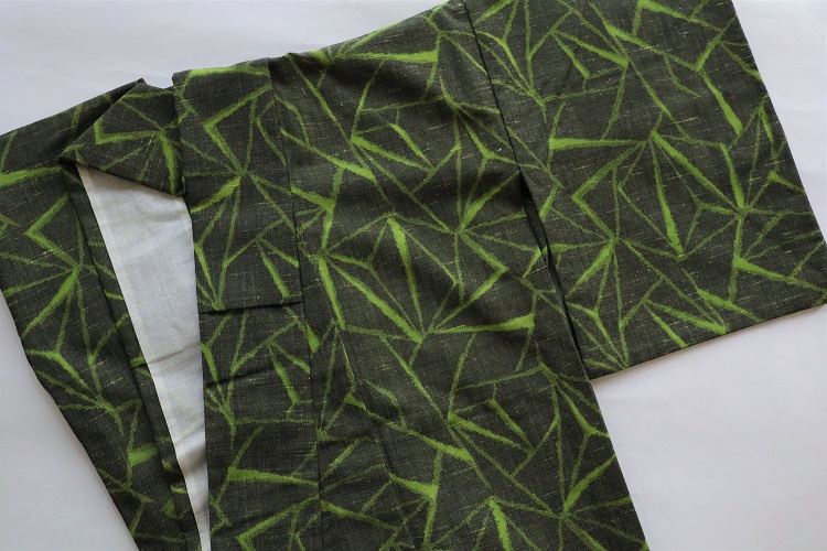 男性は着流しで着る分、男性の着物は身丈は肩から裾までのそのままの長さ。女性用の着物はおはしより分があるので、身丈は足りる事ができました。