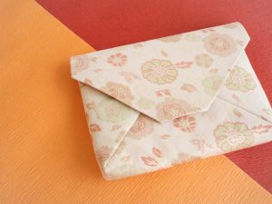 きものリメイク 薄型ポーチ 小さな生地を生かせる薄型ポーチへのリメイク。こちらのポーチは数寄屋袋とも言います。数寄屋袋というと茶道のイメージがあるかもしれませんが、薄型ポ...