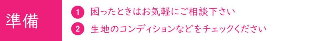 ご希望のアイテムのページにて必要な生地をご確認頂けます。必要生地の一覧はこちら→【リメイク必要生地 PDF】。